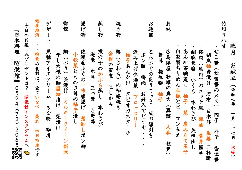 「料理長の日記」  三重県いなべ市             阿下喜(あげき)の日本料理 昭栄館