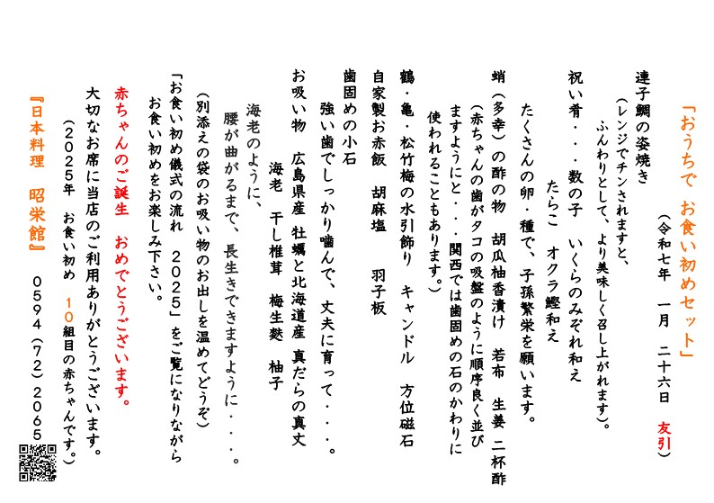 おうちでお食い初めセット 」のご注文を承って電話いました。