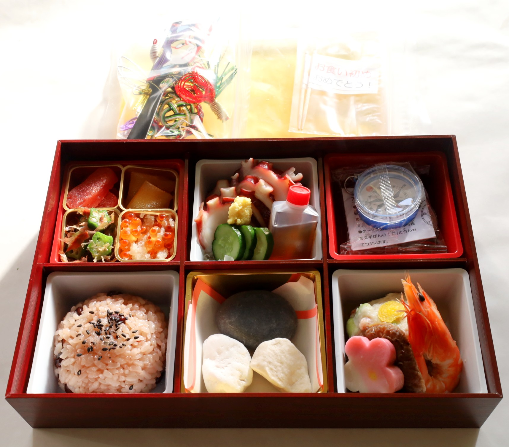 ・自家製お赤飯 ・お食い初めの小石 ・お吸い物の具材