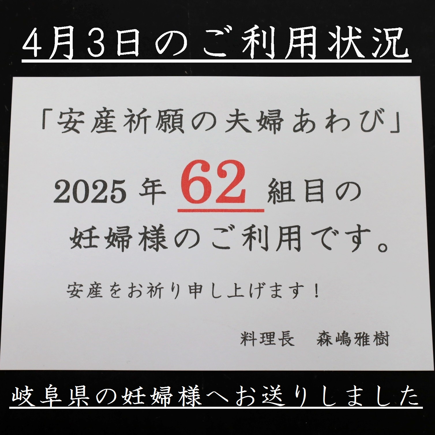 安産祈願の夫婦あわびセット のお知らせでした。