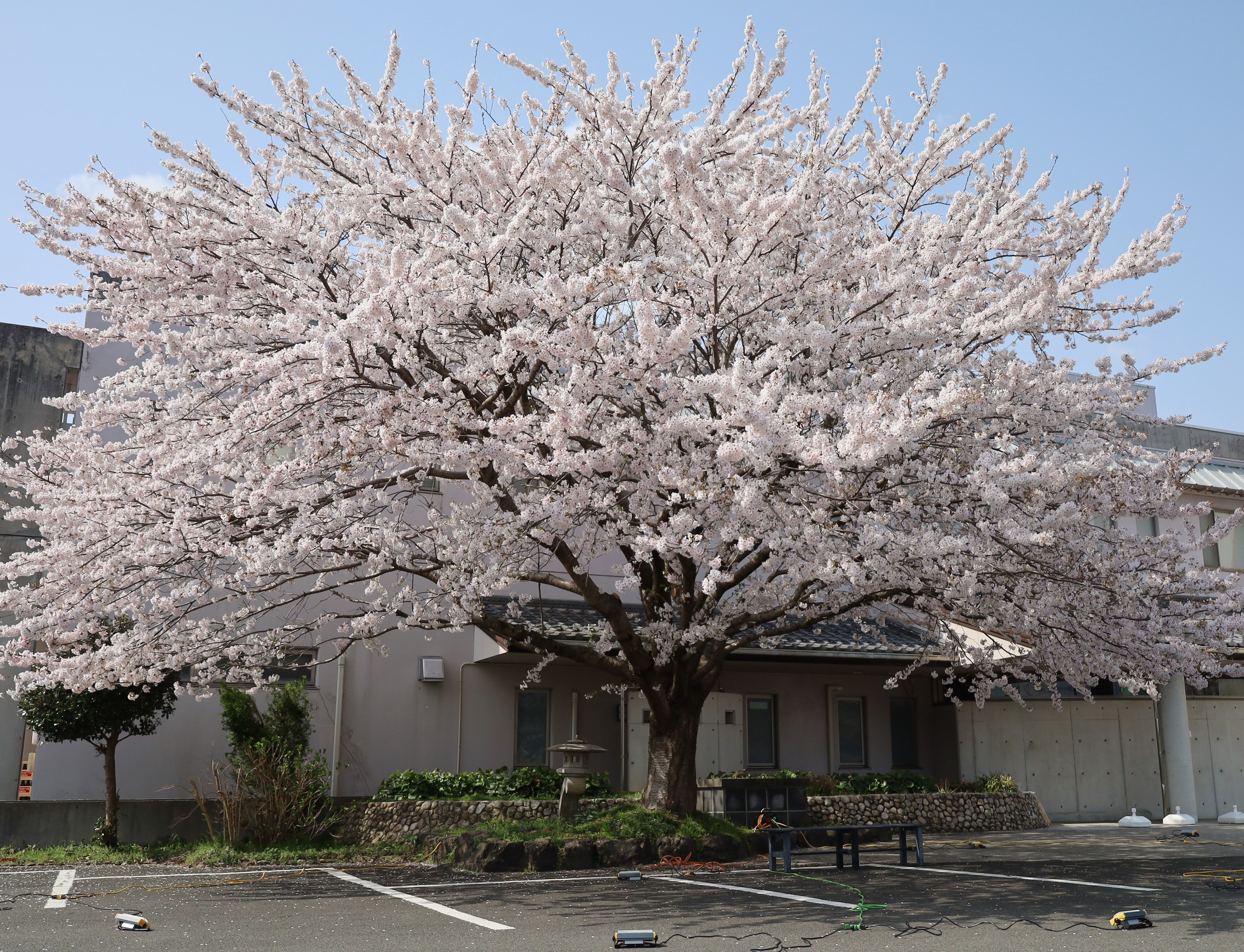 桜の足元に、投光器がご覧になれると思いますが、