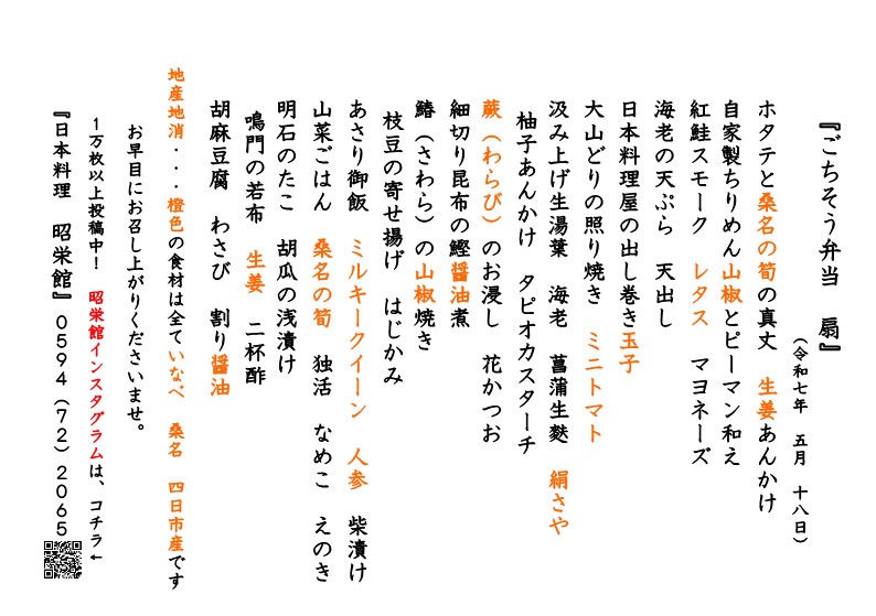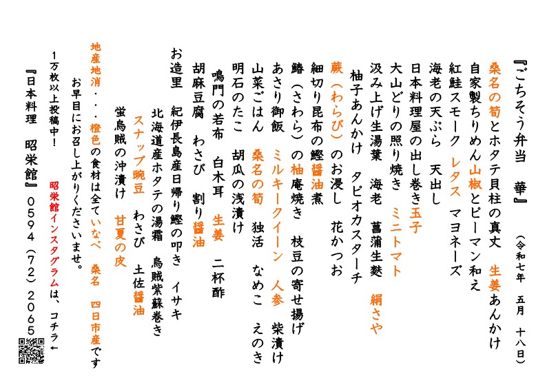 橙色 で印刷してあるのが、いなべ 桑名 四日市食材。