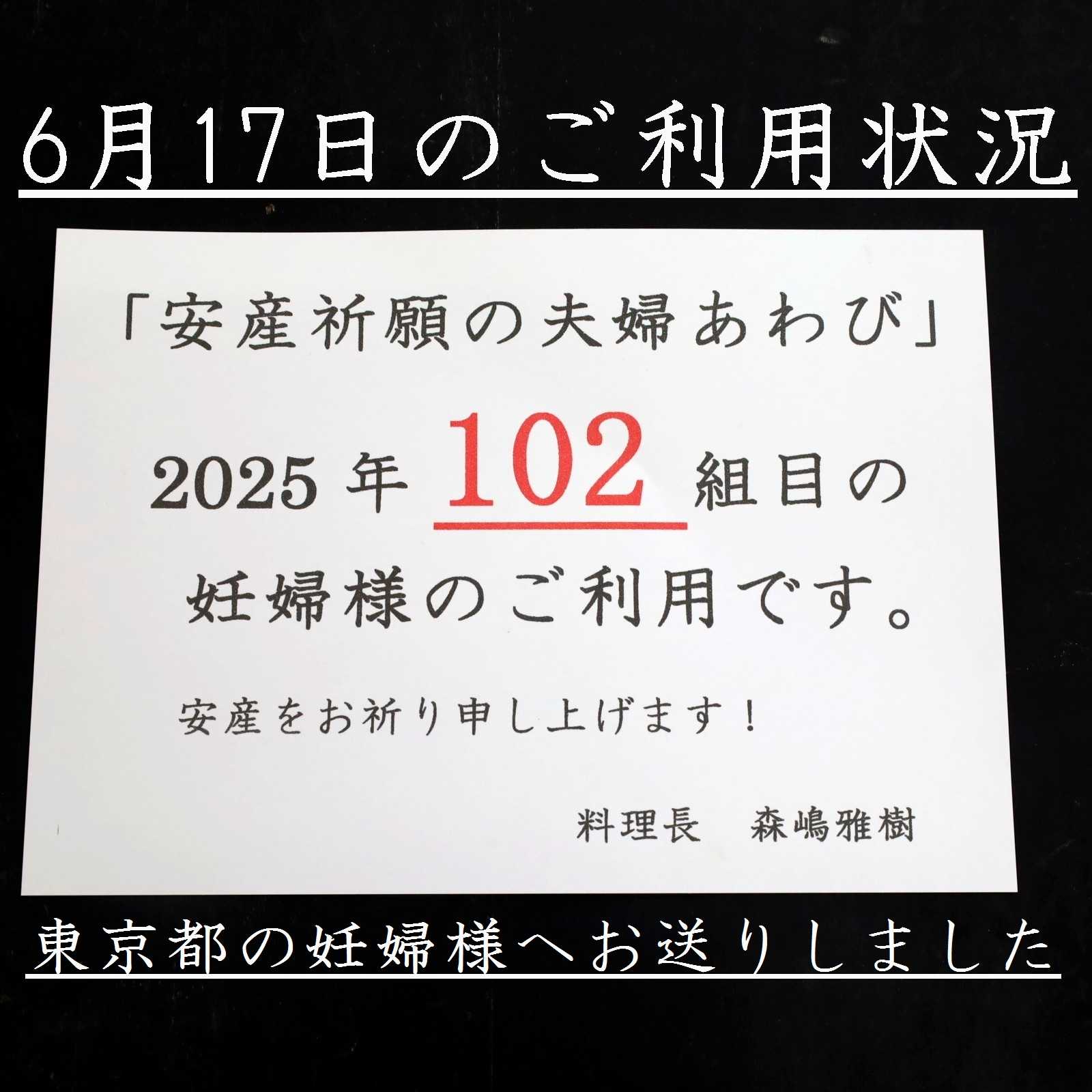 当店の安産祈願の夫婦あわび料理を召し上がって、