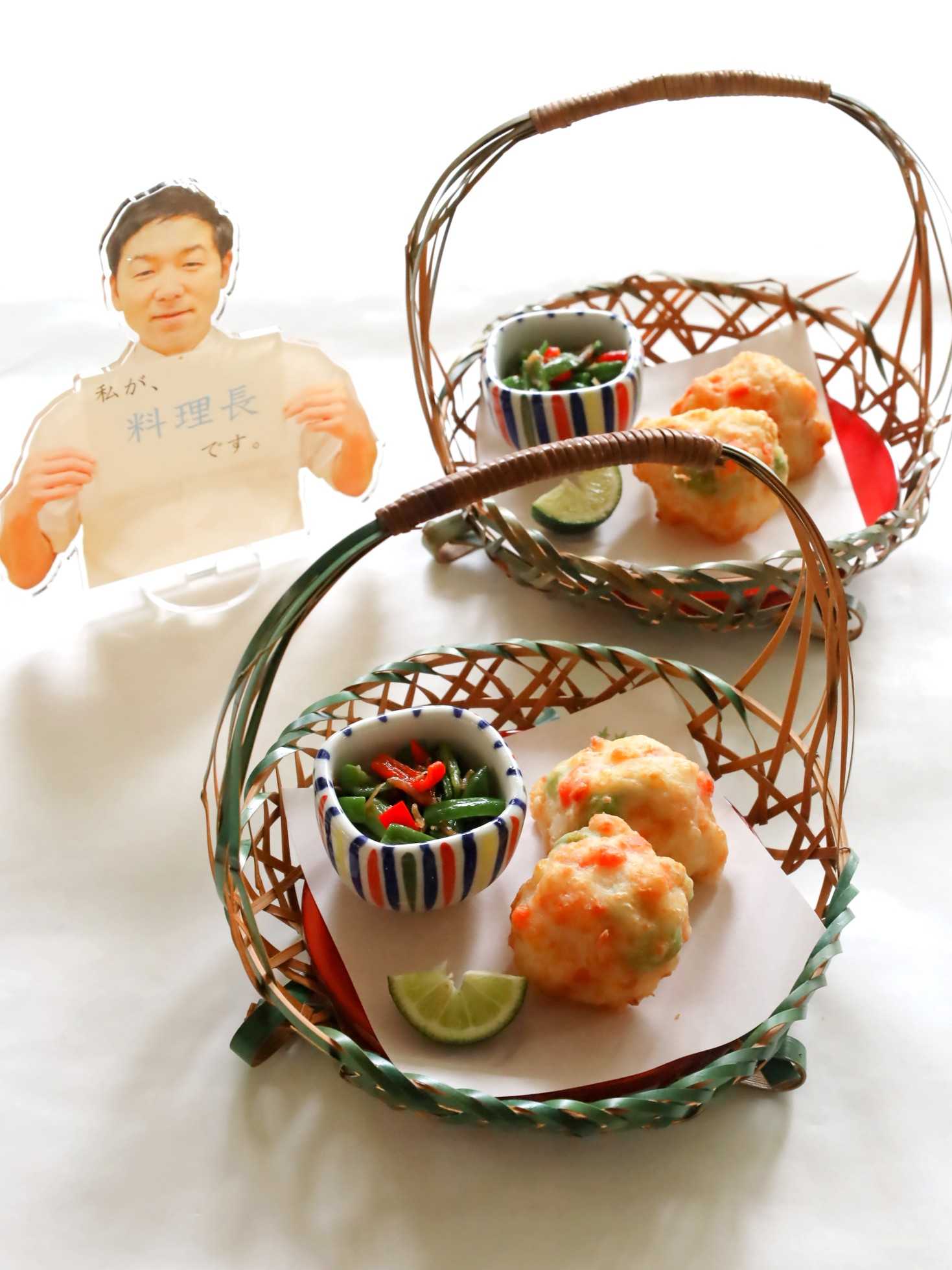 北海道産ホタテ貝柱と桑名のたけのこの真丈を揚げて・・・酢橘