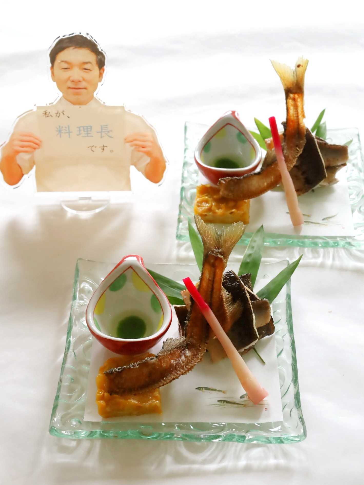 鮎の骨せんべい とうもろこしの寄せ揚げ はじかみ
