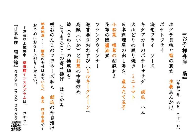 橙色 で印刷してあるのが、いなべ 桑名 四日市食材。