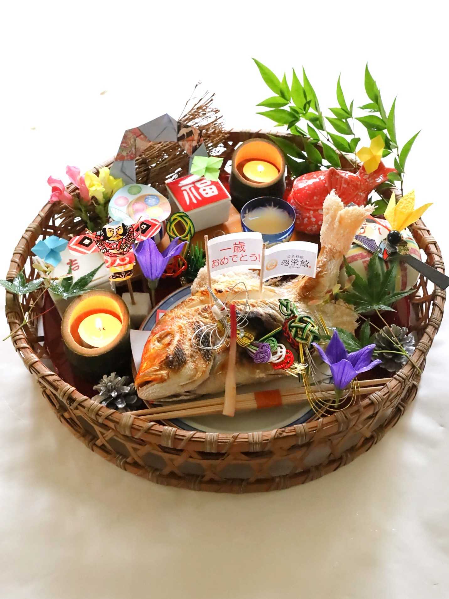 昭栄館の一歳のお誕生日お祝い膳は、季節感もたっぷり盛り込みます。