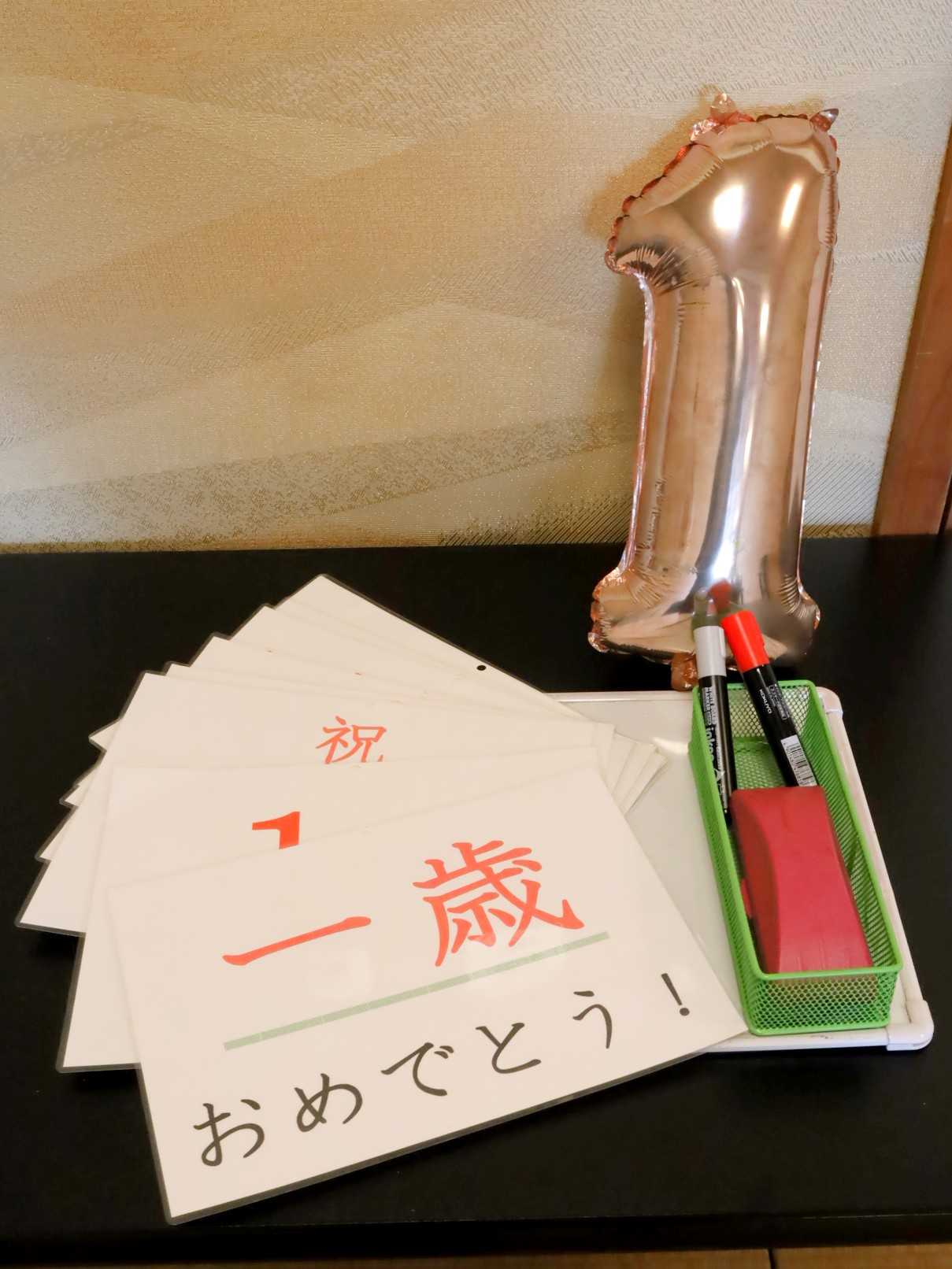 自作の 一歳おめでとうシールおめでとうシールを貼ってございます。