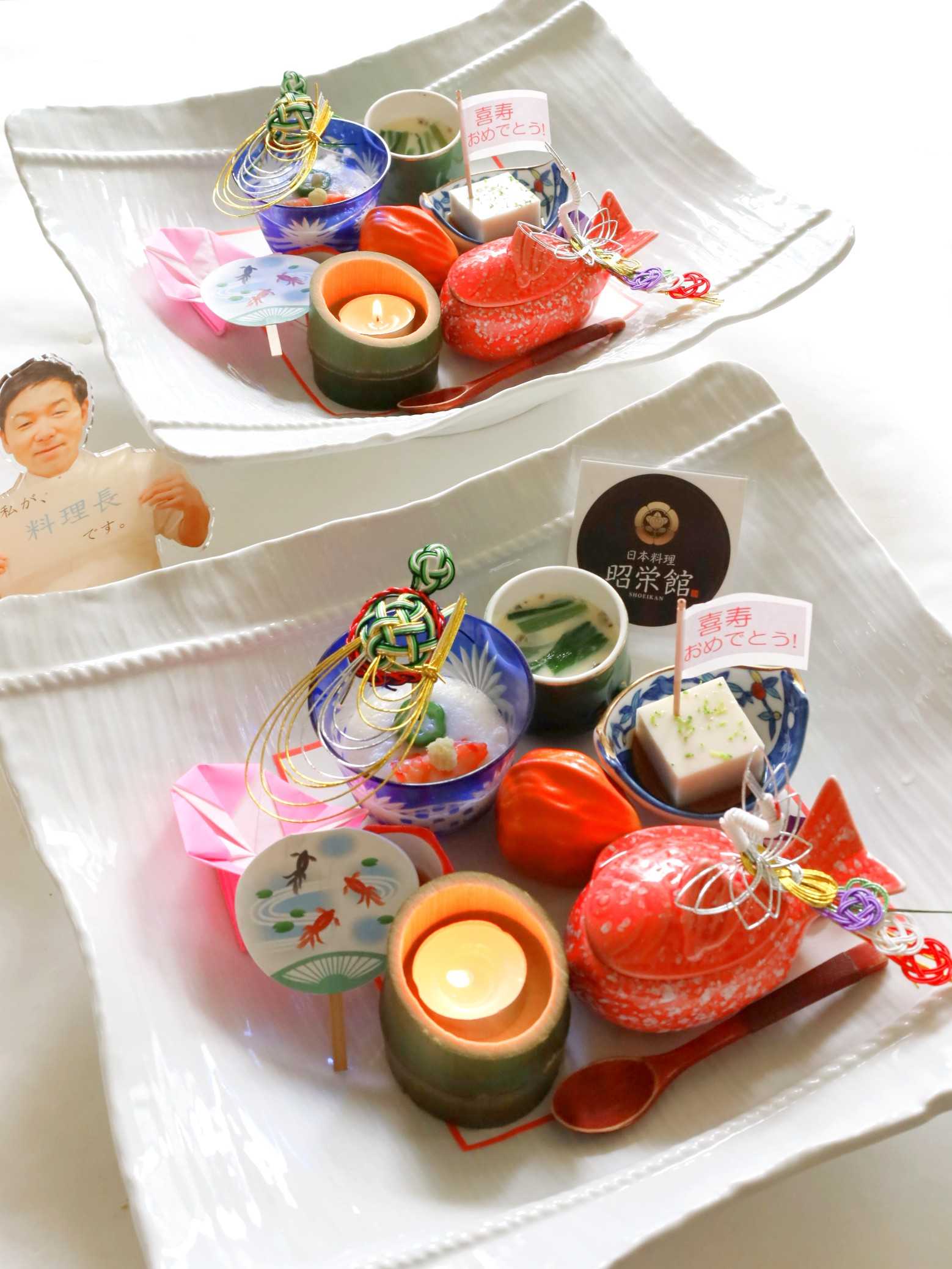 喜寿祝いのご夫婦様の分を特別盛りにして差し上げました。