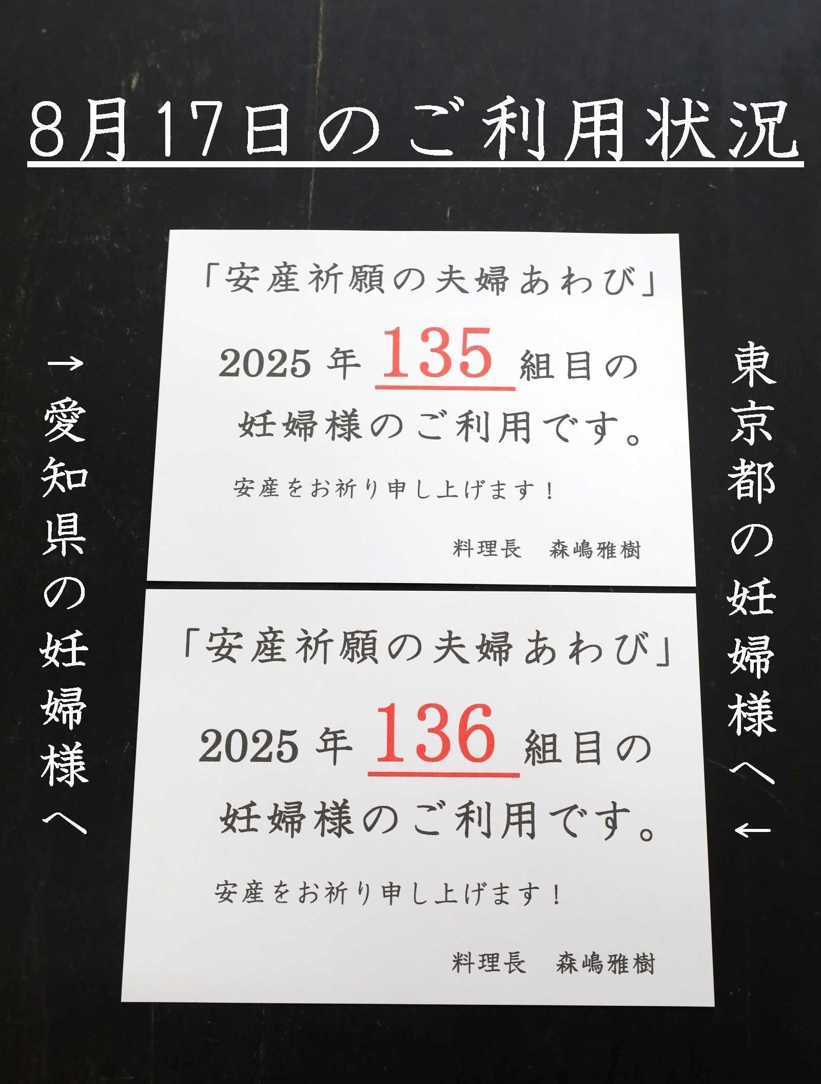当店の安産祈願の夫婦あわび料理を召し上がって、
