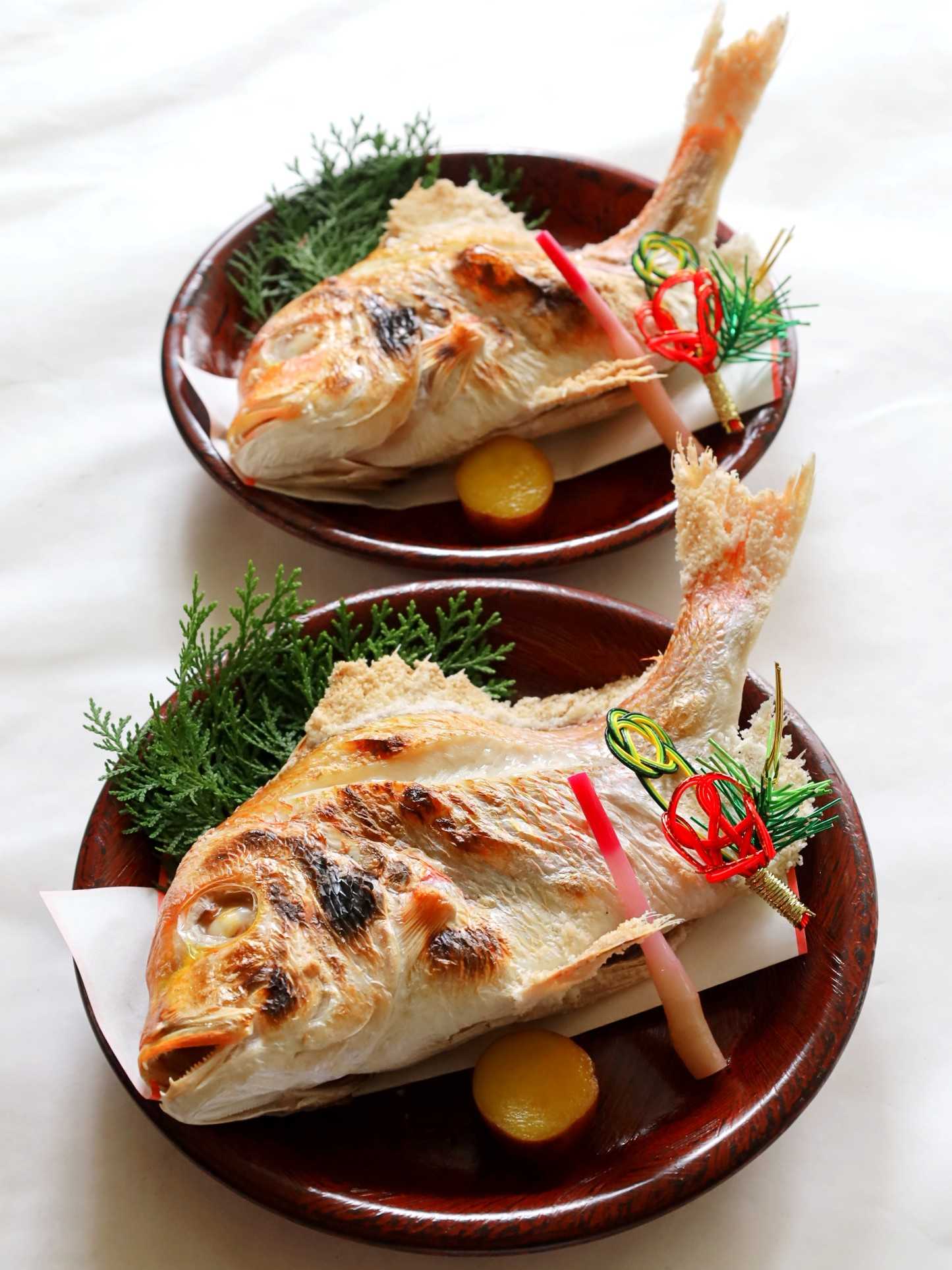 連子鯛の姿焼き 鳴門金時のレモン煮 はじかみ生姜