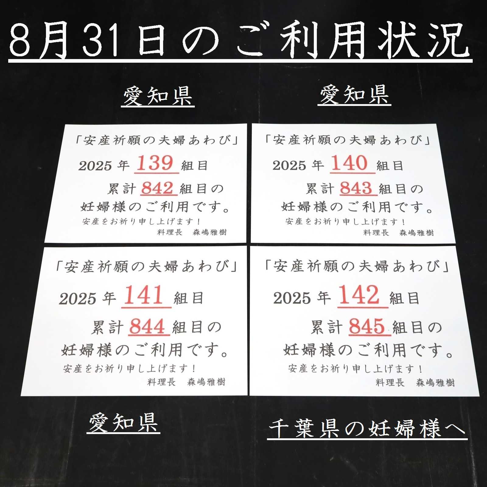 139~142組目 の妊婦様のご利用。