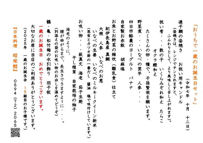 一歳のお誕生日のお子様でも召し上がれる… 2024.11.02