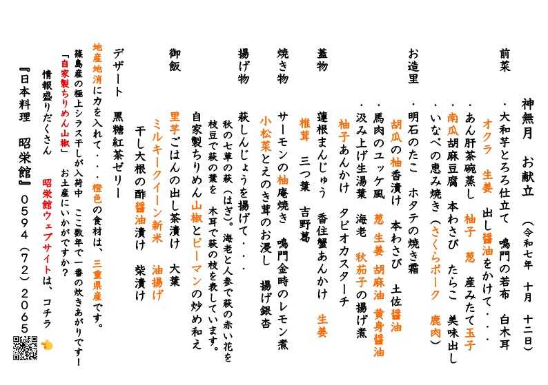 「料理長の日記」  三重県いなべ市             阿下喜(あげき)の日本料理 昭栄館