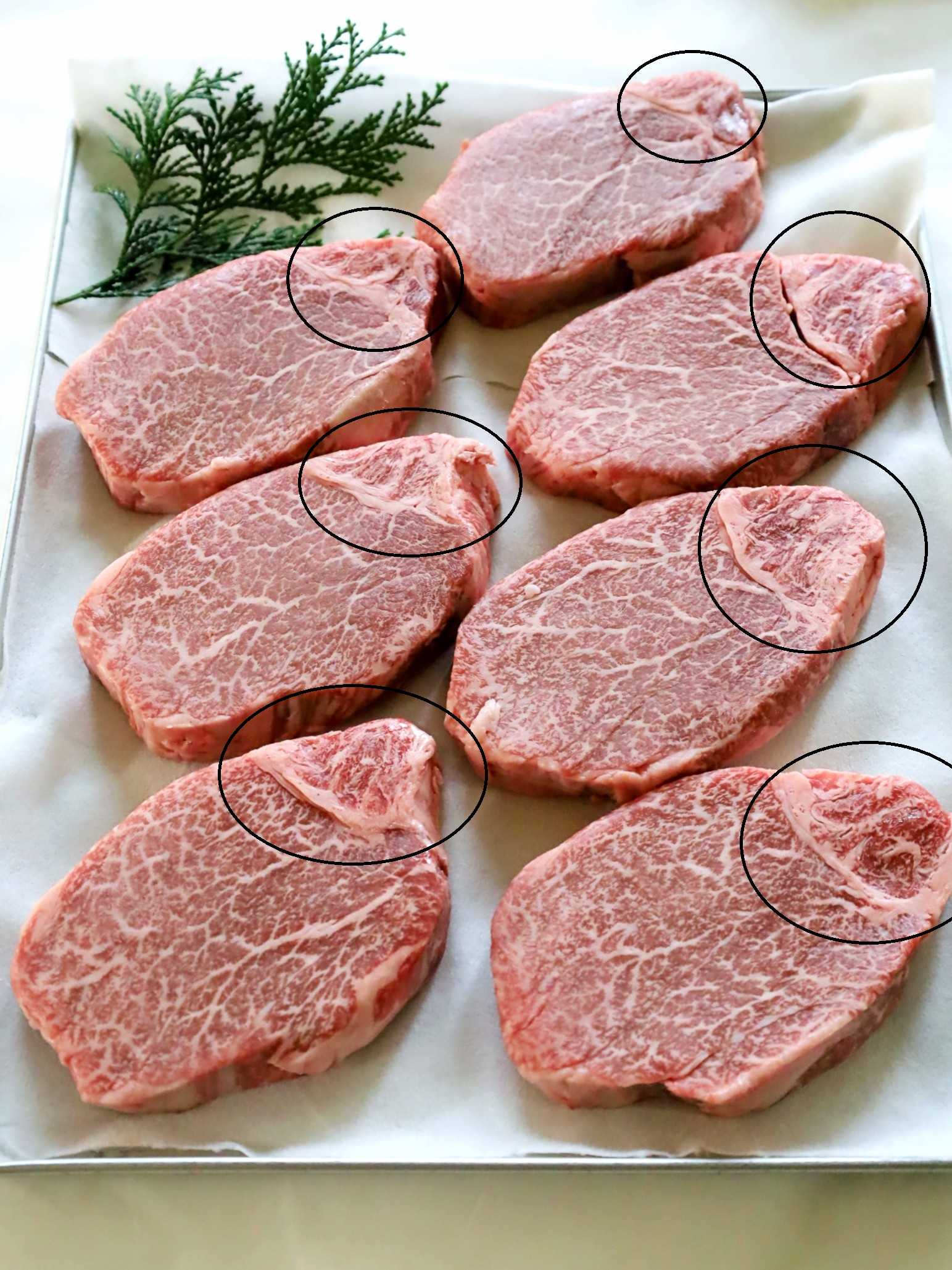 本日は、飛騨牛ヒレの黒い丸の部分を使用しています。