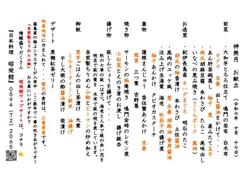 「料理長の日記」 三重県いなべ市 阿下喜(あげき)の日本料理 昭栄館