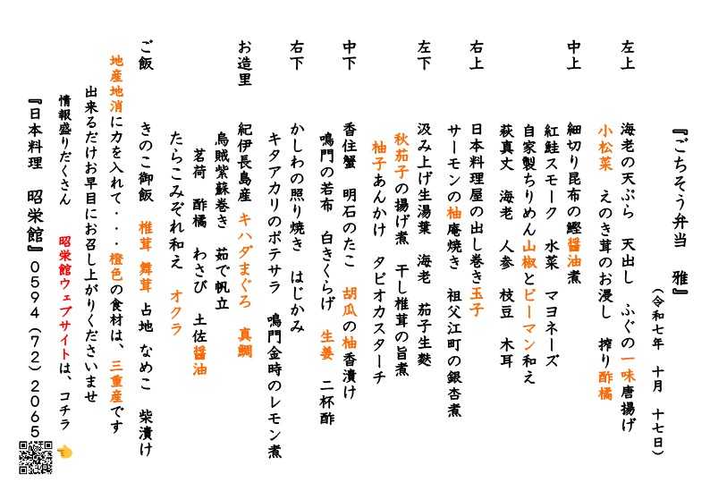 本日は文化の日。ご来店 テイクアウトお… 2025.11.03