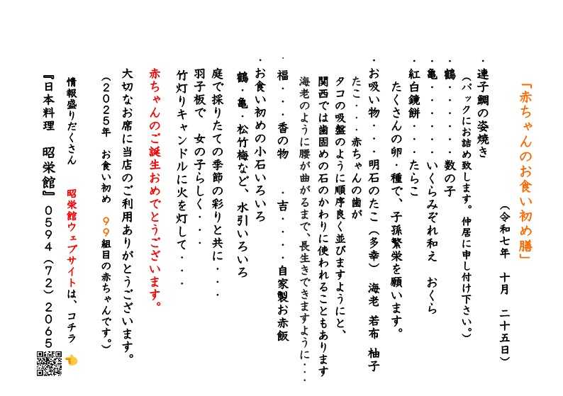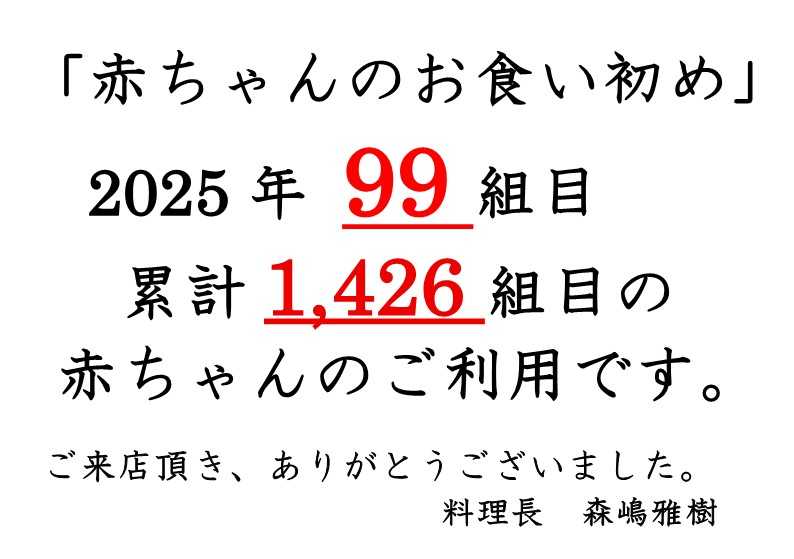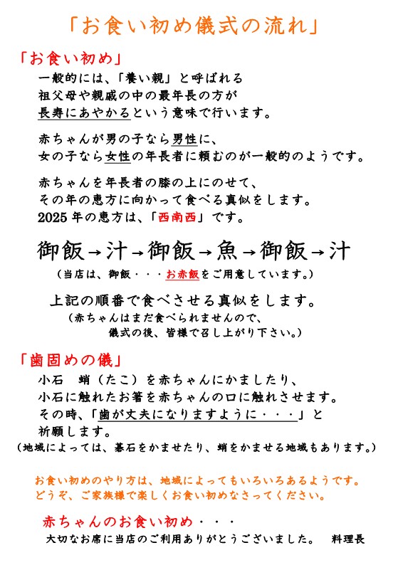 伝統のお食い初め膳で一生の記念を・・・… 2025.10.11