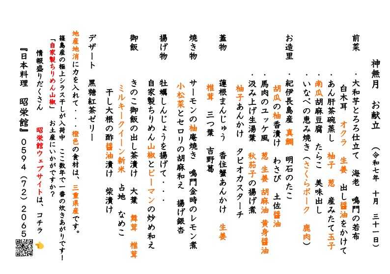 「料理長の日記」  三重県いなべ市             阿下喜(あげき)の日本料理 昭栄館