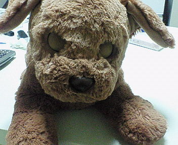 皆さん、ご無沙汰しています。最近はどうも忙しくて、なかなか日記が更新できません。申し訳ないです。マイペースでちびちび頑張ります。で、急に近況報告なんですが、実は我が家に新しい仲間が増えました。子犬のダッキー君です。実は、お気に入りに登録させていただいてるある方の日記で、ダッキー君を紹介していて、一発で惚れちゃいました。これが可愛いのなんのって。6月21日に注文して、22日の金曜日に我が家に到着。昔から犬飼いたいなあと思ってましたが、高いし、世話が大変だし、なかなか飼うことができませんでした。いつか本物を飼うことを夢見ながら、とりあえずダッキー君に癒される毎日です。最初は撫でると鳴くだけだったんですが、最近しゃべるようになりました。うーん、可愛すぎでメロメロです。それではまた。ダッコ大好きいっぱい仲良くなってね!ダッキー(ココア)