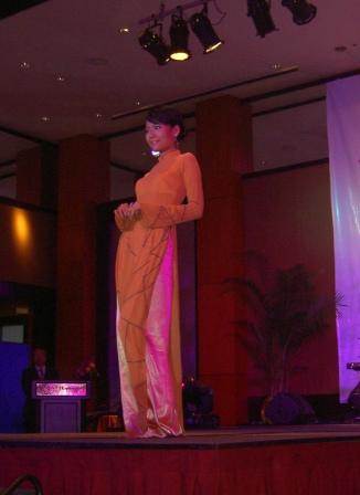 皆さんこんにちは。ベトナム旅行記第3弾は、ベトナムの文化、アオザイがテーマです。アオザイは、ベトナムの民族衣装で、基本的には正装として着用されています。ベトナム語でアオザイとは「長い着物」を意味しています。18世紀ごろ現在の中国から、入ってきたチャイナドレスが起源となっており、現在のようなデザインになったのは、フランス領インドシナの時代。ホーチミン市内でも、高校生や大学生の女の子が制服として使っているのをたまに見かけます。そういえば、ベトナム行きの飛行機で、客室乗務員もアオザイを着ていました。アオザイと言うと、どうしても女性だけの着物というイメージがありますが、もちろん男性用もあるようです。でも、男性のアオザイ姿、ほとんど見かけません。今では結婚式や伝統芸能を披露する場でしか着ないようですね。今回の旅では、交流文化祭の催しの中で、アオザイのファッションショーを鑑賞することができました。青やピンク、紫など、色とりどりのアオザイを着た、美しい女性が次々と登場。美しさというのは万国共通ですね。素晴らしい体験でした。ピンクのアオザイ青のアオザイ