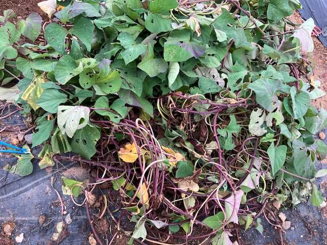 ◇かぶせておいたサツマイモの蔓です。まだ、こんなに元気でした。