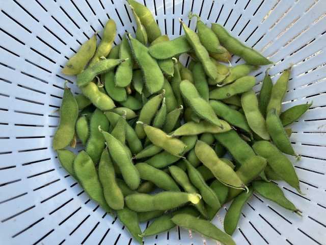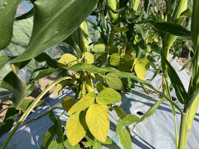 ◇トウモロコシのコンパニオンプランツとして植えていた枝豆になります。