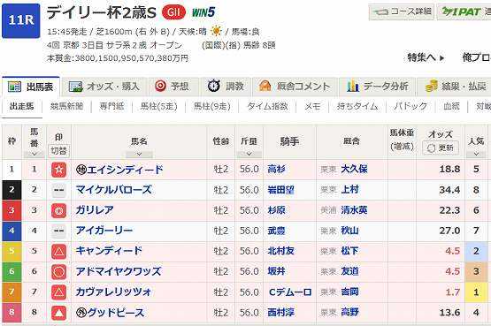 全国の競馬ファンの皆様こんにちは。昨日はBSN賞の三連複を的中も余計なモノを買ってしまい、終わって見れば赤字転落の収支でございました。札幌最終のトキノプリンセスへの愚痴を垂れながらトイレに入ると…『ハッ!』何とトイレには『だれうらむ ことはない. 身から出た さびだなあ』と書き記した『あいだみつをカレンダー』が!ほのぼのとした字体からは想像も出来ぬ叱咤のお言葉。本日からの馬券道の教訓に致しまする…【 小倉2歳S 予想 】1勝馬にも充分チャンスのある2歳重賞。悩みましたが、ここはツルマルジャパンを軸で勝負します。血統的には長めの距離が向きそうなツルマルジャパンですが、かなりのスピードを秘めていそうです。前走のマリーゴールド賞では梢重の新潟1400Mを1.20.9と好タイムをマーク。このラップを1200Mで計算しますと1.09.3の走破時計になります。今回の出走馬で芝1200Mの持ち時計がツルマルのラップを超えてる馬は、良馬場を含めても7頭、梢重ならメイクデュース1頭しかおりません。鞍上も05年の小倉2歳Sを1枠1番アルーリングボイスで逃げ勝っている武豊。再現が期待できます。対抗は梢重の小倉芝1200Mで1.08.3のメイクデュース。穴はヌレエフの血脈を持つジャングルストーンとシーポラリスに期待してます。◎ ツルマルジャパン○ メイクデュース▲ シルクナデシコ△ デグラーティア★ ワンカラット☆ ジャングルストーン穴 シーポラリス【 新潟2歳S 予想 】どうやら本日の新潟は不良馬場。軸はセイウンワンダーで勝負します。デビュー戦は出遅れで2着も、前走は6馬身差の圧勝劇。競馬ブックの写真を見ても他の2歳馬より馬体がガッシリしており、道悪でさらに抜きん出ると見ました。だが私の注目はセイウンワンダーよりも、現在13番人気のドリームゼニスでございます。先週の坂路調教では圧巻の51,5秒の時計を叩き出しているゼニス。このタイムは、何と古馬も含めた9月3日栗東坂路の2番時計なのである!◎ セイウンワンダー○ ドリームゼニス▲ ゴールドスパークル△ ダイワバーガンディ★ マッハヴェロシティ☆ バンガロール穴 ドリームゼニスそれでは