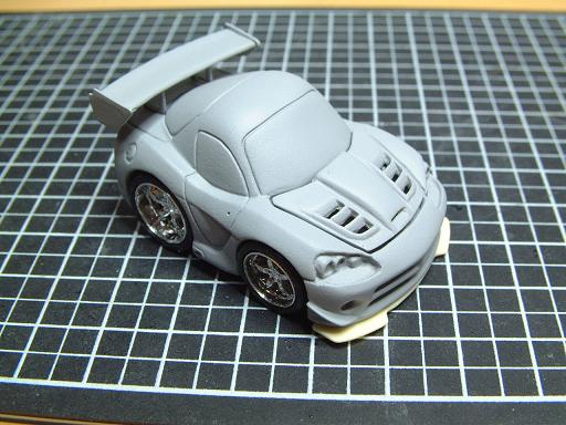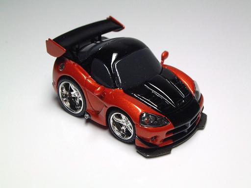 やっとDodge Viper SRT10 ACRのボンネット開閉式が完成しましたボンネットやバンパーのダクトは穴あけ加工をしてバンパー内にはラジエターも装備してあります。エンジン部分は1/64のミニカーを流用して、ちょい加工しそれらしい仕様になっていますこれで、STDモーターも内蔵していますので、チョロQの純正タイヤに変えれば走行しますよ~