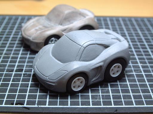 前回、紹介した原型のほかに、少しづつ手を動かして進めているNEW McLarenほぼ形状出しが終わったので、細工やディテールを追加している段階ですこの辺から、進み具合はスローペースになっちゃうんですよねそして、もう1台は久々のフェラーリで599XXですまだ、形状出しをしている所ですが・・・・ロングノーズ・ショートデッキの特徴のある形なので作りやすいかな