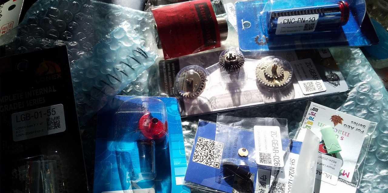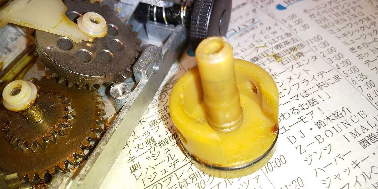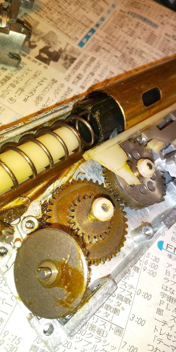 XYZギアですが、JG刻印のギアが混ざってます。同じ物なんでしょうね、きっと。今回の個体は普通のMp5用シリンダーでした。ギトギトに固いグリスが塗られてました。