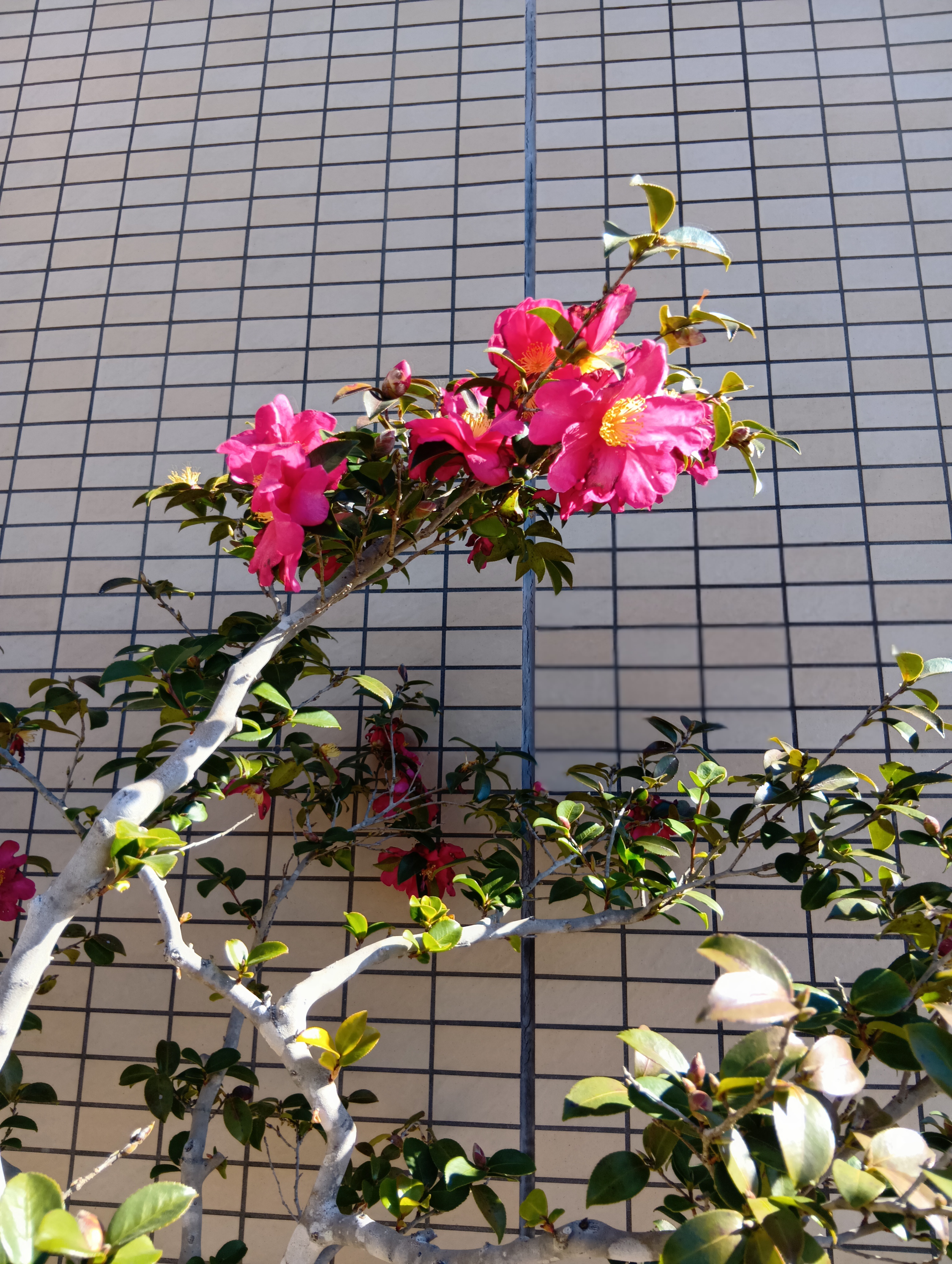 お昼にお弁当配達したマンションの玄関先に咲いていたツバキです^^