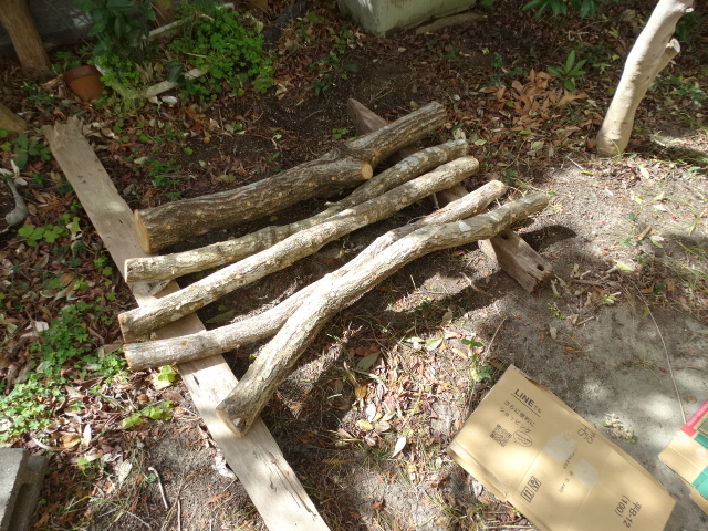 先日今年もシイタケ菌を打ちこみました^^これで三年連続です^^