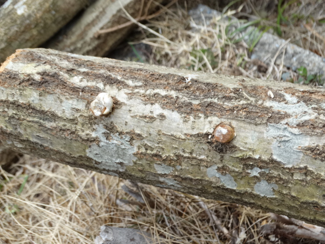 このホダ木からは夏を2回越した頃の秋ごろにシイタケが出てくるはずです^^