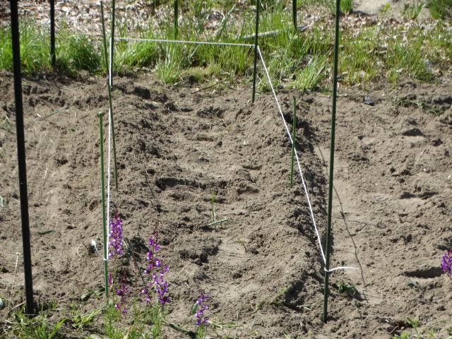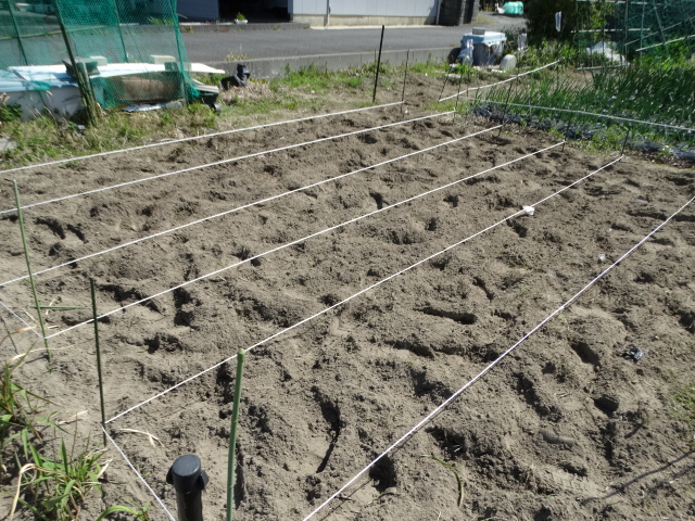 ここが🥒🍅🍆を植えます(畝を3通り作ってあります)