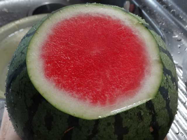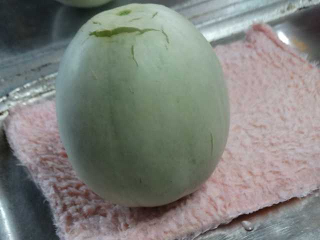 上側を切って見ました^^良い色をしてますね^^実はシャキシャキしていて結構甘かったです