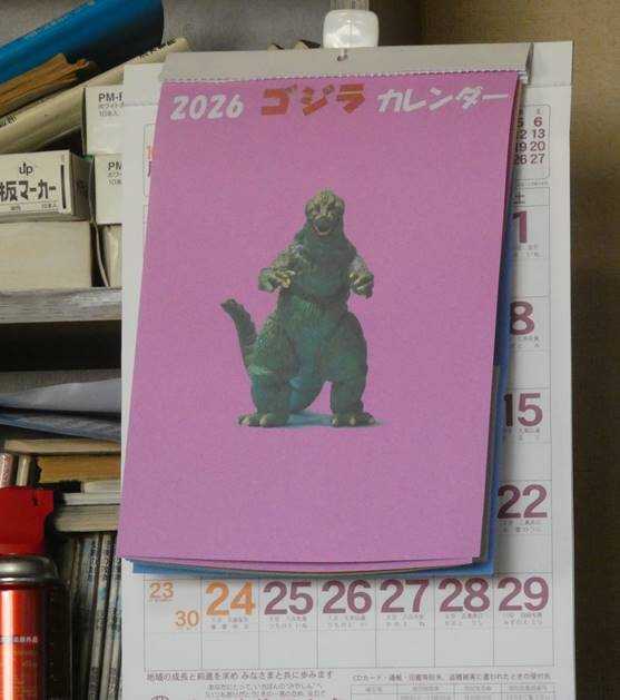 自作カレンダー完成 ! 2025/11/26開始なお、ゴジラフィギュアは初代ゴジラについで私…