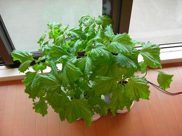 青シソは、採っても採っても育ってきて、もお一杯です。 摘心したら、ねずみ算で、葉も増えてきました。 写真は、青シソ15株とバジル1株 と 小ぶりの青シソ4株です。 さらに、青シソ2軍が10株以上急成長中です。 毎日、冷奴に添えたり、そうめんのツユに入れたり食べてますが、 いい加減に食傷きみとなりました。 株ごとおすそ分けしてゆくか、大量に使う料理でも探すか、 かな。