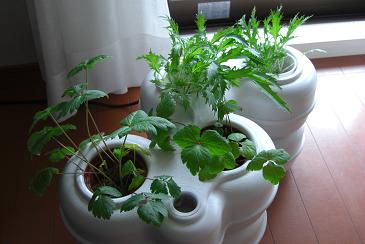 陽ざしが奥まで入らなくなったリビングルームは、葉もの野菜に適した環境になっています。この時期一番のお勧めは、さらだ水菜。小松菜よりも、少量でも存在感があります。ちょっとピリッとした味は、麺などのトッピングにして食べています。