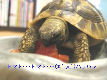 今日の奇跡マイお気に入りココナッツ亀と我が家の王子様の2ショット(*´∀`*)ガラス越しだけど、並んじゃってかわゆぃのう♪かわゆぃのう♪♪今日の夜メニューはタンポポ、クローバー、大根の葉、ミニトマトまぁ、最初に飛びつくのは言うまでも無く・・・でも、ミニトマトを食した直後に必ずシッコ&尿酸かますのは何故ですか??身体の中の水分許容量でもあるのでしょうか・・・不思議。ミニトマト制覇すると、しばらくミニトマト探してた・・・ミ「おかわりはーーー??」さ「ないッす、あげないッす。」しかし、王子のおかわり顔はカワィィなあ( ´∀`)クダすからあげなぃけどねーーー(`∀´)