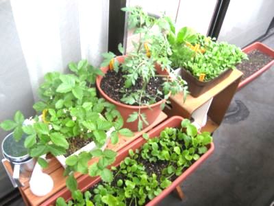 ミィたんファームこと、我が家のベランダ菜園の近況です ハイ、出たドーーーーン増えちゃいましたーーーーーーー(つ∀`*)笑 もー最近、ホムセン行くたび欲しいの見つけちゃうモンだから、いつの間にかベランダが庭化してきた・・・・・・ これでも、かなり我慢して増やしすぎなぃようにしてるんですけどねぇーf(´-`;)ホントは、あとバジルとハイビスカスとシシトウなんかが欲しいンですけどねぇー。あんまり増やしすぎて枯らしちゃったら困るし・・・上手に育ててらっしゃる方とか、ホント尊敬しちゃいますねー ではもっと詳しく・・・ ワイルドストロベリー ミニトマト(赤・黄) お花は咲きますが、実はまだ・・・ どっちがどっちだかすでに謎(笑) 早く赤い実ついてほしぃです 支柱を立てないでいたら、だんだん 白いお花がベランダで目立って 傾いてきちゃいました カワィィんですよー( ´∀`) 早く支柱立てなきゃです 葉大根&小松菜部隊 ローマンカモミール&チコリ だいぶ大きくなりました ハーブ達ですチコリは亀さんが 葉大根の葉がちゃんと大根ぽく 食べると聞いたので・・・ なってきました( ´∀`) でも、チコリはすごくエカキムシが 小松菜はまだかなー?? つくので、毎日駆除格闘中です ルッコラ第1、第2部隊 クローバー部隊 ルッコラも順調に大きくなってます かなーり成長は遅いですが、 手前の第1部隊は鉢から飛び出して ちゃんと大きくなってます きました。 双葉の間からまぁるい葉っぱが ひょろくて心配してた第2部隊も 出てきましたかわぃぃ だいぶしっかりしてきました ・・・と、まぁこんな感じです(●´ω`●)ゞ 毎朝10分くらいですが、お水をあげたり、害虫をチェックしたり、間引きをしたり・・・手間はかかるけど、なんか癒されますよーーー( ´∀`) ま、食べられるものばかり育ててしまうのが私らしぃといぅか何といぅか・・・汗 でも、基本はミィ王子が食べるもの、ですけどね。