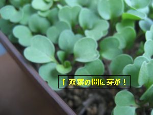 今だ沈黙を守る我がみぃたんファームの引っ込み思案、白クローバー部隊。「今日もまた沈黙ですか・・・(´Д`)」と、思っていたら、ん、これは・・・ついにその沈黙を破って発芽すごーく小さな芽。つぅか、クローバーの芽ってどんなかわかんなぃしな~うちの他の野菜とは違う感じの芽だし・・・注意して観察しとこぉー