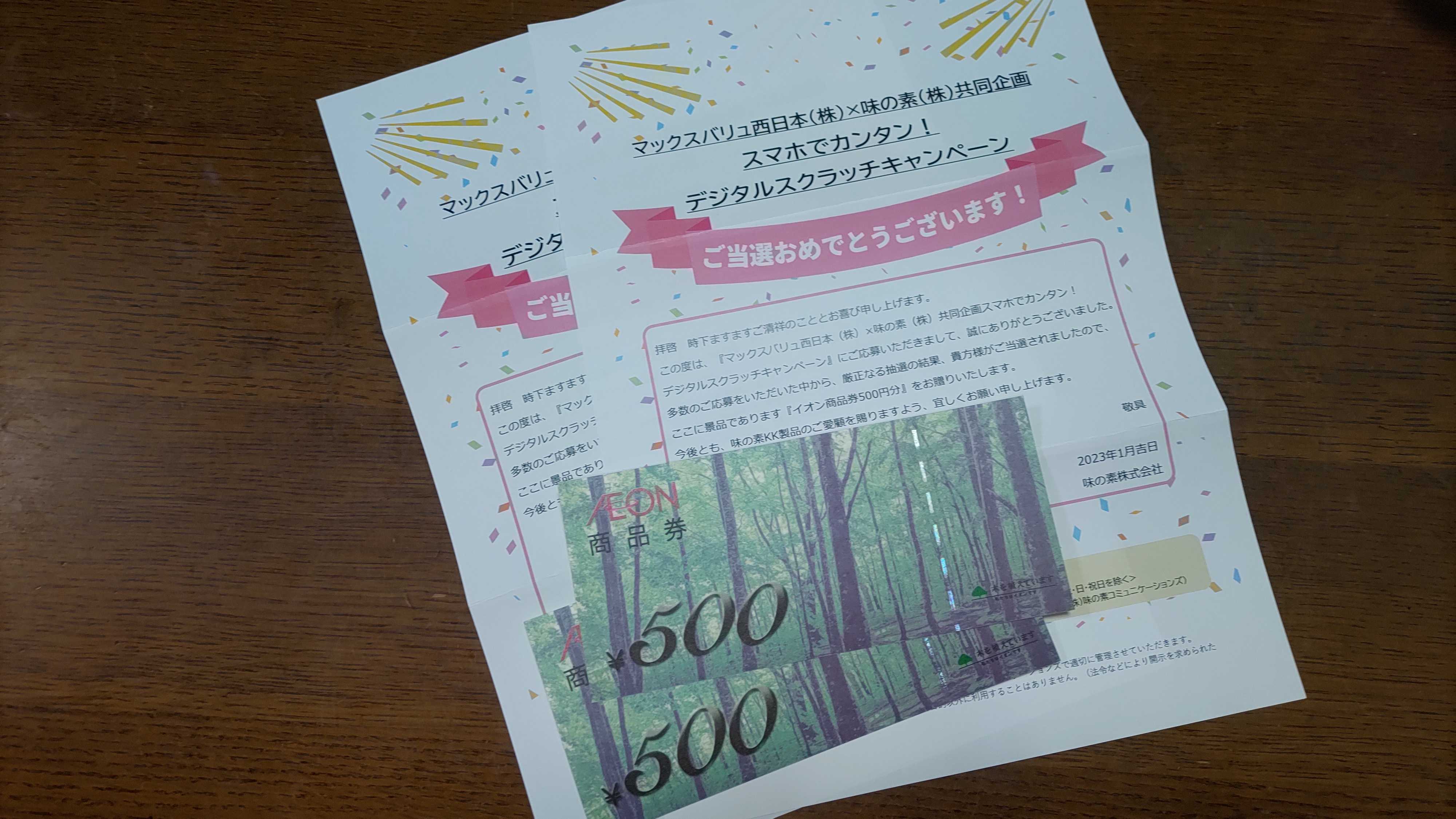 懸賞で当選の金券類は 約7万円