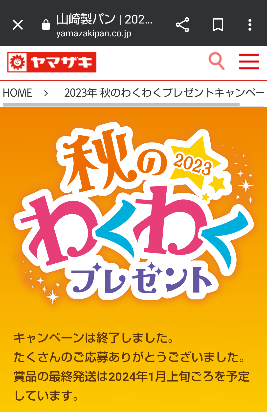 🍀ヤマザキ「秋のわくわくプレゼントキャンペーン」