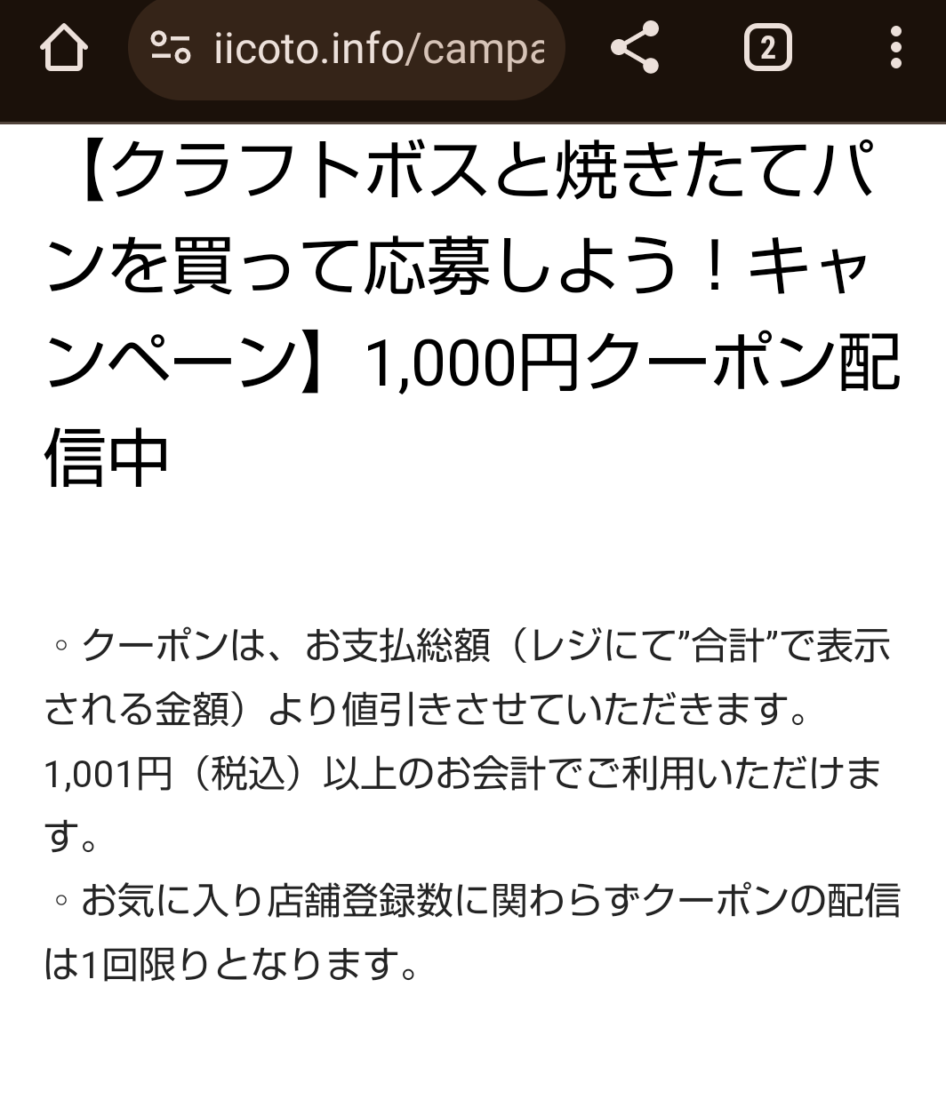 クラフトボスと焼きたてパンを買って応募しよう!キャンペーン