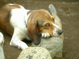 メスのメリーはすぐ太る性質で、食事量を減らすのだが、恨めしそうに私を見上げる。