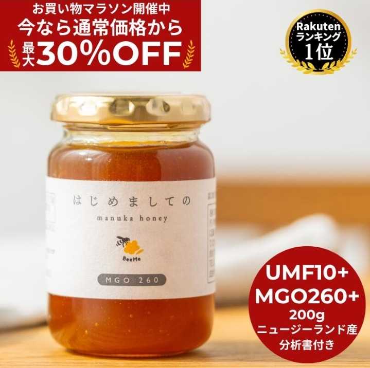 ★最大30%OFF!お買い物マラソン限定割引★【送料無料】はじめましてのマヌカハニー 200g ( UMF10+ MGO260 ) マヌカハニー ニュージーランド産 正規品 高級 蜂蜜 無添加 無農薬 非加熱 生マヌカ モノフローラル 単花蜜 はちみつ ガラスジャー ギフト お土産 おすすめ 価格:3,980円(税込、送料無料) (2025/10/5時点)