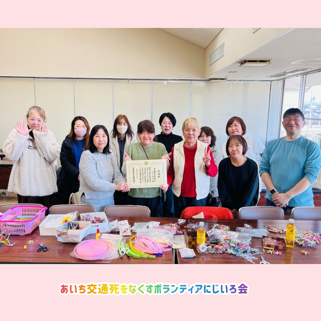 昨日は午前中は刈谷警察署の感謝状授与式に出て一度家に帰ってお昼を食べて、午後から今年初めてのボランティア活動を知立からスタートしました!!昨日は12名のメンバーさんがそれぞれご都合に合わせて来て下って約1ヵ月ぶりにみなさんのお顔が見れてとっても嬉しい気持ちで作業ができました。みなさんとってもお元気そうで私も元気をたくさんもらいました。年末年始休みの間にたくさん作って下さったストラップも持って来て下さって本当に助かります(^-^)みんなが揃ったところで刈谷警察署からもらった感謝状を持って写真を撮りました。これは私個人ではなく、みなさんにいただいたにじいろ会への感謝状ですから!!メンバーさん方がいて下さるからにじいろ会の交通安全啓発活動ができるのです。昨日は来られなかったメンバーさんにも、美濃加茂支部と京都支部のメンバーさん方にも心から感謝いたします!!春日井支部のOさんも春日井警察署から感謝状をいただいたと連絡をもらいました。あいち交通死をなくすボランティアにじいろ会は2つの市で感謝状をいただいて本当にこれからの活動の励みになります。皆様本当にありがとうございます!!(昨日今年初めてのボランティア活動で参加メンバーさんと)昨日はおしゃべりしながらもたくさんのストラップを完成させることができました!!長野県のSさんがご自宅でたくさん作って下さった花編みパーツを昨日持って来て下さってそれをみんなで完成させることができてすごく助かりました!!さえパパと私はクラフトテープのカットをしました。クラフトテープやカニカン紐や木工ボンドもたくさんの方々がご支援で送って下さって本当にありがたいです!!昨日今年初めてのボランティア活動をしながらこうしてたくさんの方々が携わって下さったりご支援くださる事が本当に嬉しいと心から感謝の気持ちでいっぱいになりました。先のことを考えると正直不安なこともいっぱいあります。一番はいつまでこうして元気にボランティア活動を続けていけるのだろうかと心配になることも。でも先を憂いても仕方がありません。ここまで来るまでにもたくさんの方々がご尽力くださって中にはご事情でもう来られなくなってしまったメンバーさんもみえてたくさんの出逢いと別れもありました。その方々にもたくさん支えていただいたことはずっと忘れません!!そして今のメンバーさんにも心から感謝!!今年も1年間、先を憂いず前を向いて真っ直ぐに一歩一歩進んで行きたいと願うのです。たった1人のさえりんの想いと被害者遺族の私たち夫婦の想いが、こうして心ある仲間ができて大きな輪に広がってこれたことは本当に奇跡みたいな現実です。勇気を出して1歩を踏み出して良かった!!心優しいみなさんに出逢えて本当に良かったです!!お空から素敵なご縁を繋いでくれたさえりんありがとうね♡(昨日の知立ボランティア活動の様子)2月1日(土)にじいろ会合同の親睦会をします。限定50名でしたが、ご都合で今のところ47名のメンバーさんとご家族が参加して下さる予定です。寒い季節ですがみなさんが体調など崩さず元気で天候もよくお会いできることを楽しみにしています。これからもにじいろ会のボランティア活動をよろしくお願いいたします!!(さえりん6歳8カ月 安城市堀内公園で遊ぶpart3)ご訪問いただきありがとうございます!!いつも温かいコメントありがとうございますさえママへのメールはこちらからにほんブログ村、応援おねがいします!!この「さえりんの部屋」を一人でも多くの方に読んでいただき、交通死亡事故で悲しむ人がもう増えませんようにと心から願っています!!さえりんをクリックしてください!! にほんブログ村人気ブログランキングよろしければこちらも応援おねがいします。さえパパの「可愛いさえりん1分間動画💛」ぜひ見にきてね!!さえりん動画はこちらさえりんの部屋別館にじいろ会公式ホームページが完成しました!!よろしければ以下のリンクからご覧下さい。https://saerinsaeri.wixsite.com/aichinijiirokai