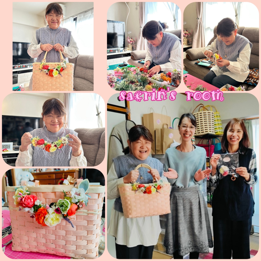 昨日は我が家で、にじいろ会メンバーA先生の花デコレッスンの日でした。SさんとYちゃんも来てくれる予定でしたが、Yちゃんは前日から熱が出たため来れませんでした。ということで昨日の生徒は私とSさんの2名でした。朝お昼ご飯用のパンを最近お気に入りのコッペ田島に買いに行きました。予めみんなから注文を聞いていた1人2つずつの惣菜コッペパンとみんなで食べる用に揚げコッペのシュガー3個とさえパパの分も合わせて11個も買ってきちゃいました(^-^;自宅へ帰る途中で次女のアパートの前を通ったので仕事が休みだった次女に「コッペパン食べる??」と電話すると寝ぼけた声で「食べたい!!」と言うので、私用に買った惣菜コッペパンと揚げコッペのシュガーの2個を部屋に届けました。次女は午後から友達と遊びに行くので朝はゆっくり寝ていたようです。急いで帰ると午前10時過ぎで、A先生とSさんはもう我が家に到着してさえパパがいたので家に上がってもらっていました。早速花デコレッスンスタートです!!Sさんは花デコ初体験で娘さんにお孫さんの卒園式用のコサージュをプレゼントしたいとコサージュを作ることに。私は今回はガーランドに挑戦です(^-^)A先生に予め「オレンジ色系のガーランドが作りたい」と頼んでいたので、オレンジ系やグリーン系の色の花をたくさん持って来て下さいました。可愛いらしいお花がいっぱいで花を選ぶだけでもとってもワクワクします。造花ですがたくさんのお花に囲まれているととっても優しくて幸せな気分になれます。A先生に作り方を教わりながら少しずつ形になっていく事がとっても嬉しくて、気付けば盛りだくさんのお花や葉っぱや飾りが詰まったガーランドが完成しました(≧▽≦)私が最近いつも使っているサーモンピンク色の春っぽいクラフトバッグに付けてみたらオレンジ系のガーランドがとっても映えて大満足です✨Sさんは娘さんに似合いそうなピンク色と水色系のコサージュでチュールとビーズの飾りもとっても可愛くできあがりました!!初めてなのにとっても器用でセンスが良いSさん!!家に帰って娘さんに渡したらとっても喜んでくれたそうです。お昼12時頃に2人とも作り終わったのでお昼ご飯にしました。さえパパにカフェラテを淹れてもらい、コッペ田島のコッペパンは大きくて1つでお腹いっぱいになります。みんなに2つずつ買ってきたので1つは食べて1つは持ち帰ってもらいました。あと揚げコッペのシュガーを3等分に切ってみんなで1切れづつ、おしゃべりしながらみんなで食べるとさらに美味しくて楽しいランチです。美味しいクッキーとラスクも一緒にいただきました。午後1時半頃お2人は帰って行かれました。また今度はYちゃんも一緒に楽しい時間を過ごしたいです!!最近美味しいものばかりたくさん食べているので、夕方さえパパと一緒に近所のドンキまで歩いてお散歩がてら牛乳を買いに行きました。昨日もあったかくて春のような気候だったので全然寒くはなく気持ちが良かったです。ドンキでは牛乳だけのつもりがコーヒー豆も買って、お肉が半額や割引になっているのを見たらついついたくさん買ってしまいました(^-^;歩いて行ったときに限ってたくさん買っちゃうのもあるあるです💦さえパパが荷物は持ってくれて、夕陽をバックに歩いて帰るのも好き。本当にこの生活が好きだなあっと心から想うのです。昨日晩ごはんはすき焼きにしました!!前の日にくらさんちーさんから滋賀県産のあじわい牛をいただいたからです。本当は次女も一緒にと思いましたが次女は職場の友達たちと遊びに行って晩ごはんも食べてくると言っていたのでさえパパと2人でいただいちゃいました。柔らかくて味わい深くてとっても美味しかったです(≧▽≦)さえりんのお供えに頂いたイチゴもデザートでいただきました。くらさんちーさんありがとうございました!! この年末年始はメンタルが低迷していてそれに加えてマロンが死んでしまいショックでしたが、みなさんのお蔭で少しずつ前を向いて進めそうです。さえりんも今のママの生きる姿を好きでいてくれるかな??(さえりん6歳8カ月 家族でラグーナ蒲郡へpart5)ご訪問いただきありがとうございます!!いつも温かいコメントありがとうございますさえママへのメールはこちらからにほんブログ村、応援おねがいします!!この「さえりんの部屋」を一人でも多くの方に読んでいただき、交通死亡事故で悲しむ人がもう増えませんようにと心から願っています!!さえりんをクリックしてください!! にほんブログ村人気ブログランキングよろしければこちらも応援おねがいします。さえパパの「可愛いさえりん1分間動画💛」ぜひ見にきてね!!さえりん動画はこちらさえりんの部屋別館にじいろ会公式ホームページが完成しました!!よろしければ以下のリンクからご覧下さい。https://saerinsaeri.wixsite.com/aichinijiirokai