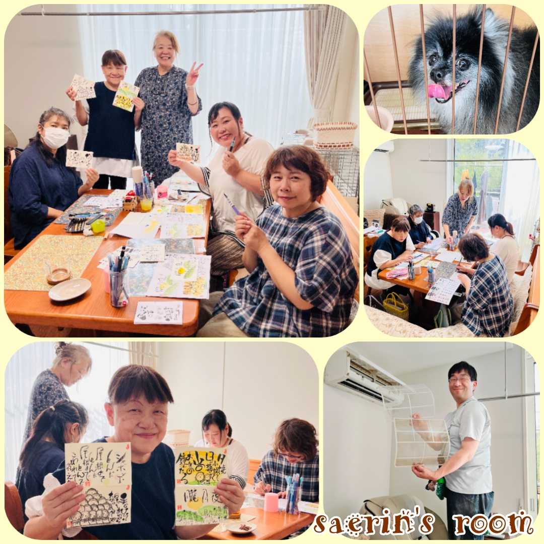 今日はとっても忙しく充実した一日でした。朝9時から12時まで仕事に、帰ってから急いでお昼ご飯を食べて刈谷市のYちゃんのお宅に向かいました。今日は午後1時から2時半までYちゃん先生の己書幸座を受けてきました。私はもう1年以上習っているのに脱線して順番通りの課題からすっ飛ばしてイラストの色紙ばかり書いていた時期があるので半年前から始めたみんなより遅れています(^-^;だから今月は2回目の幸座参加です。今日は久しぶりににじいろ会のメンバーさん方と一緒だったのでみんなそれぞれの課題に真剣に取り組んでいましたが、生徒4人が同じテーブルにいるだけでにぎやかに楽しい気分になりました。みんな文字やイラストを描くのに性格が表れていて個性を感じました。私はせっかちなので殆ど練習せずにいきなり勢いだけで本番をさっさと書いてしまいます。これも私らしいです(^.^)今日はみんなの顔も見れたしたくさん元気をもらえて本当に楽しい己書幸座でした!!(今日は午後から己書幸座へ)今日はさえパパも付き添いでついてきてくれました。Yちゃんに「エアコンの室内機から水がポタポタたれるし効きがあまり良くない」と話を聞いて、さえパパがさっと動いてお庭に室外機を見に行って異常がなかったのでエアコンの室内機のフィルター掃除しました。とっても綺麗になってYちゃんは喜んでくれました。やっぱり元電気屋さんです、お役に立てて良かったです!!私はみんなより遅れて参加したのに午後2時40分頃に一番先に課題を終えてYちゃん先生のお宅を出て次の場所へ向かいました。次に向かったのは知立市の実家の駐車場に車を置いてそこから歩いて10分の知立駅です。そこで3時半から用事があったのです。その様子はまた明日のブログで!!(さえりん10歳4か月 妹の誕生日)ご訪問いただきありがとうございます!!いつも温かいコメントありがとうございますさえママへのメールはこちらからにほんブログ村、応援おねがいします!!この「さえりんの部屋」を一人でも多くの方に読んでいただき、交通死亡事故で悲しむ人がもう増えませんようにと心から願っています!!さえりんをクリックしてください!! にほんブログ村人気ブログランキングよろしければこちらも応援おねがいします。さえパパの「可愛いさえりん1分間動画💛」ぜひ見にきてね!!さえりん動画はこちらさえりんの部屋別館にじいろ会公式ホームページが完成しました!!よろしければ以下のリンクからご覧下さい。https://saerinsaeri.wixsite.com/aichinijiirokai